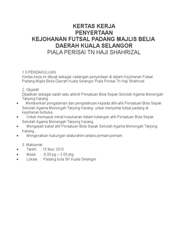 Doc Kertas Kerja Kejohanan Futsal Terbuka Jemputan Pgmb Mordiana Mohammed Academia Edu