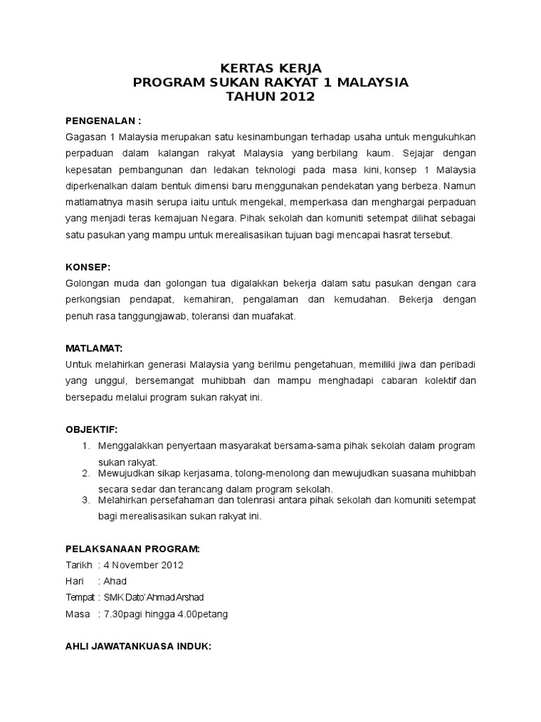 Contoh Kertas Kerja Sukan Rakyat Rasmi Re