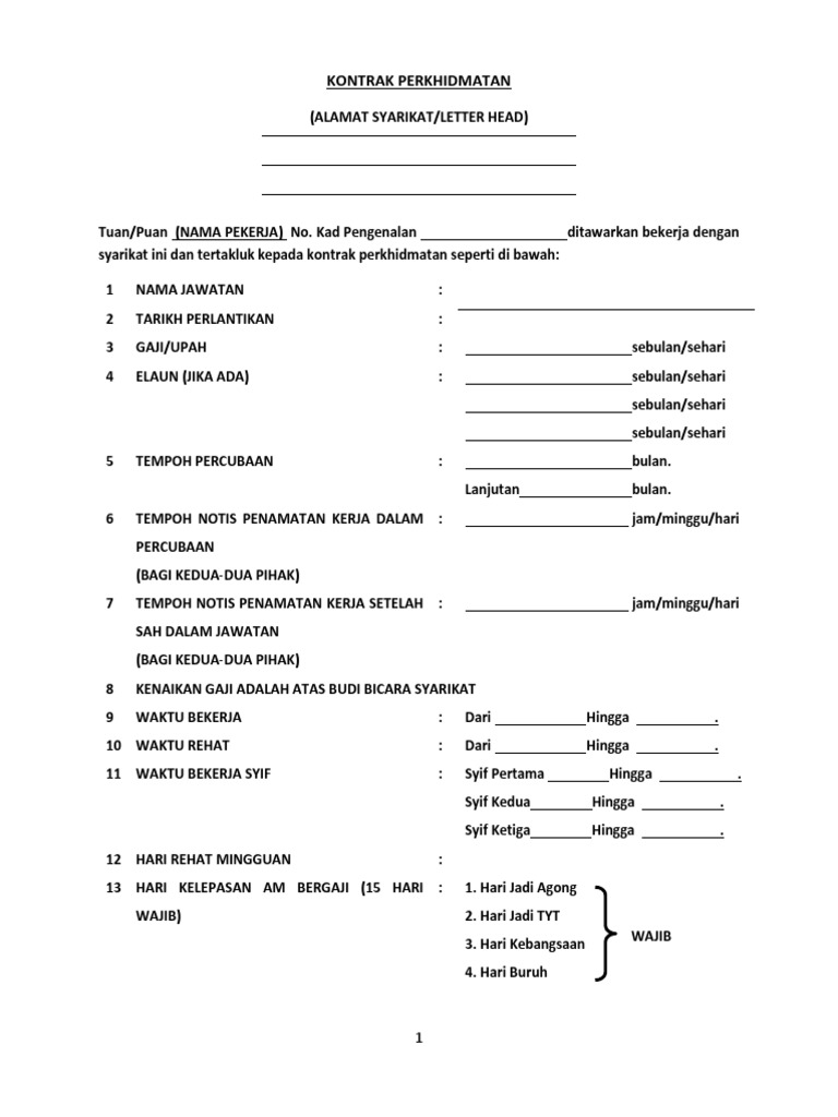 Contoh Kontrak Perkhidmatan Pekerja