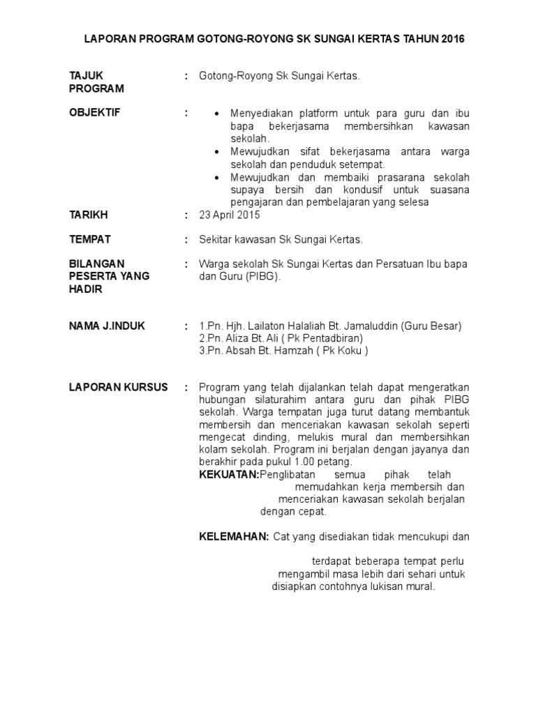 Contoh Laporan Aktiviti Gotong Royong Seputar Laporan
