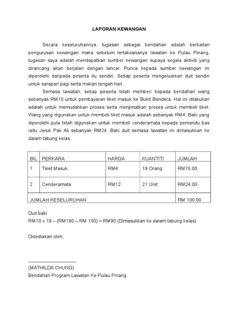 Contoh Laporan Kewangan Bendahari Program