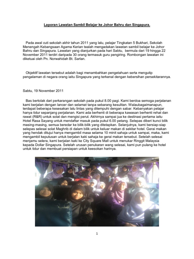 Laporan Lawatan Sambil Belajar Ke Johor Bahru Dan Singapura