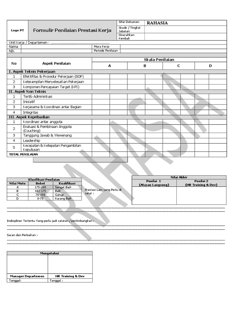Contoh Formulir Penilaian Prestasi Kerja Karyawan