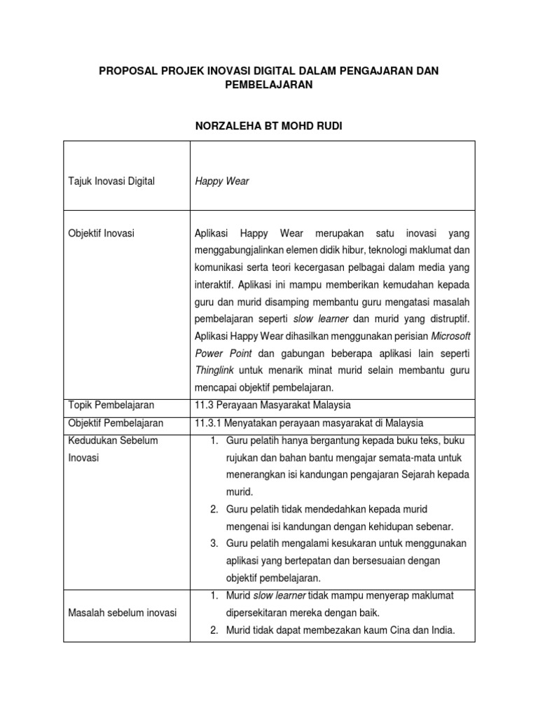 Proposal Inovasi Digital Dalam Pengajaran Dan Pembelajaran