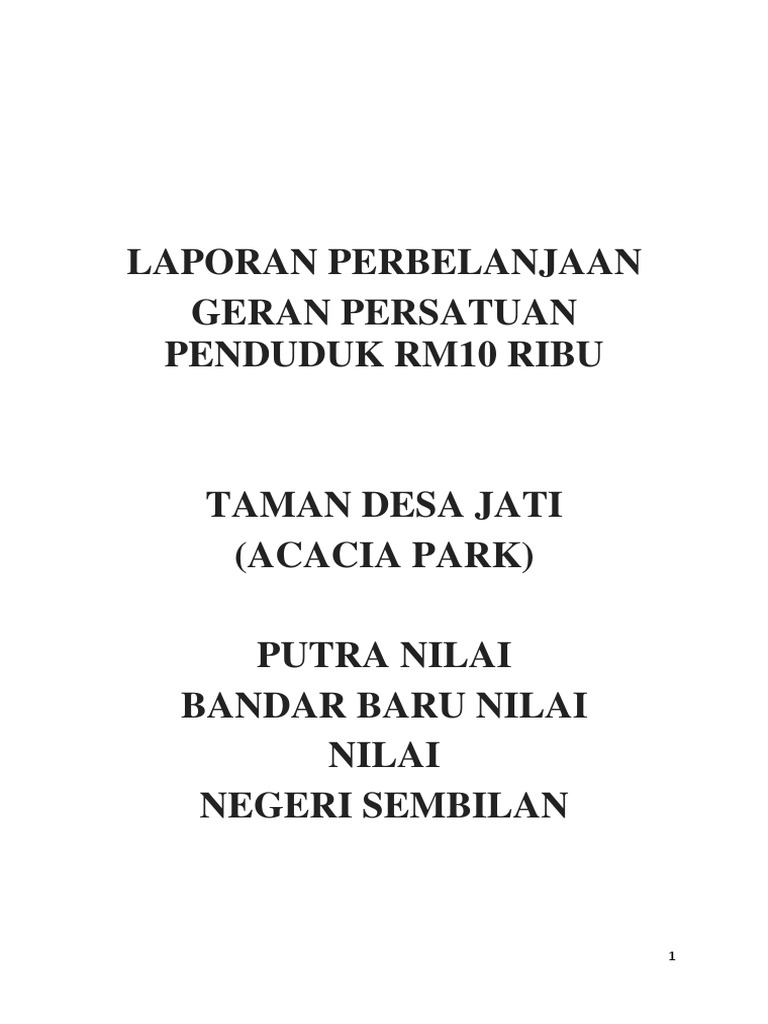 Contoh Laporan Aktiviti Persatuan Penduduk