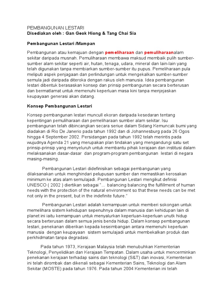 Pembangunan Lestari Di Malaysia