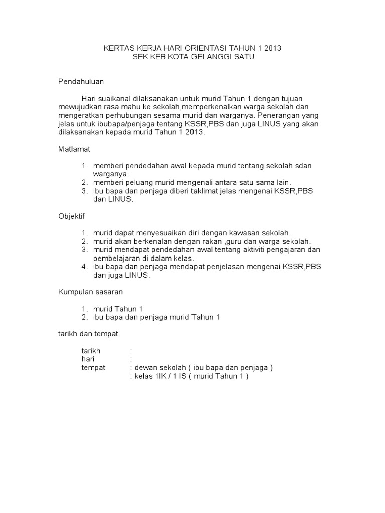 Kertas Kerja Hari Orientasi Tahun 1 2011 Sek Doc