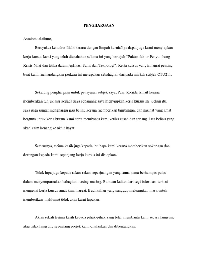 Kertas Kerja Ctu 151 Docx Penghargaan Assalamualaikum W B T Dan Salam Sejahtera Bersyukur Kehadrat Ilahi Kerana Dengan Izin Dan Kurnianya Dapat Juga Course Hero