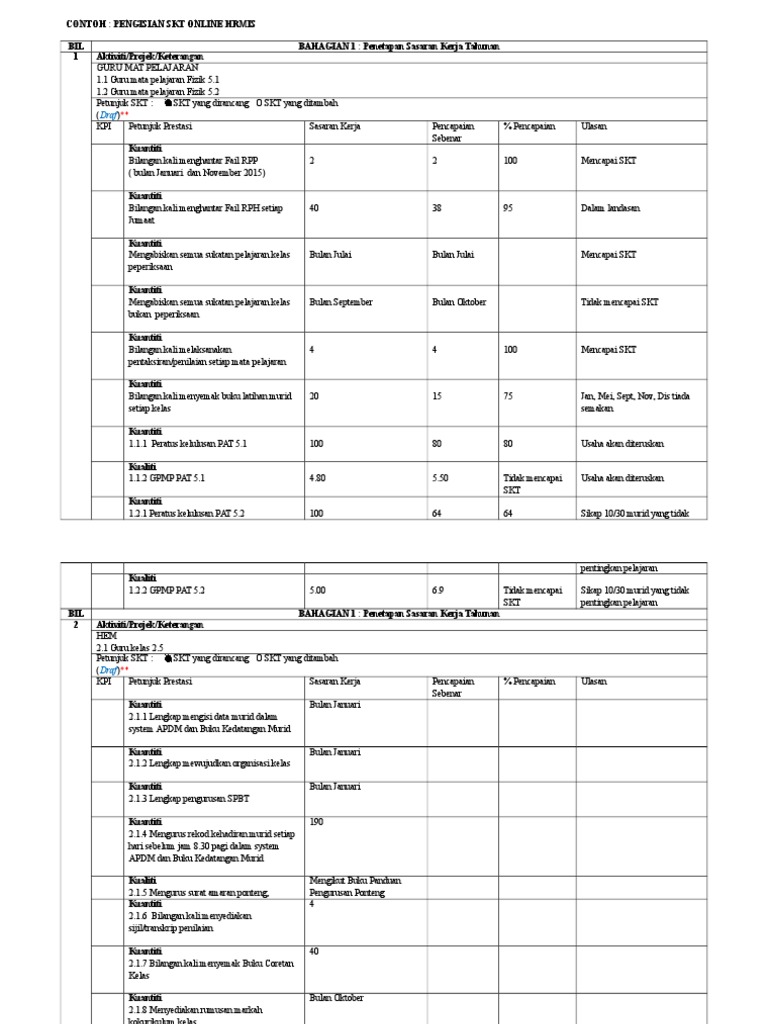 Contoh Borang Sasaran Kerja Tahunan Skt Yang Lengkap Tahun 2014 Blog Cik Matahariku