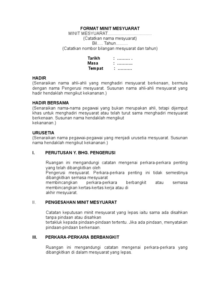 Format Minit Mesyuarat Yang Betul Pendidik2u