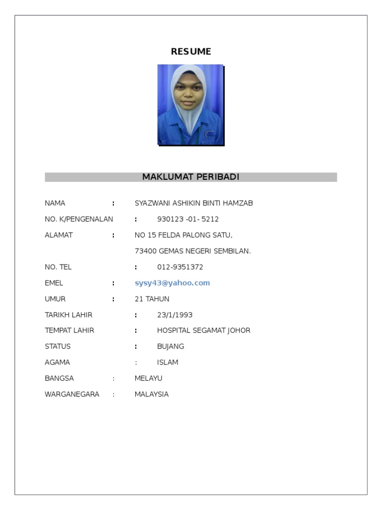 149 Contoh Resume Terbaik Mohon Kerja Download Edit Word Melur Net