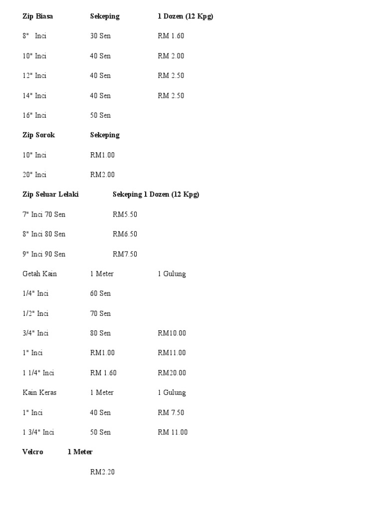 Senarai Harga Peralatan Menjahit