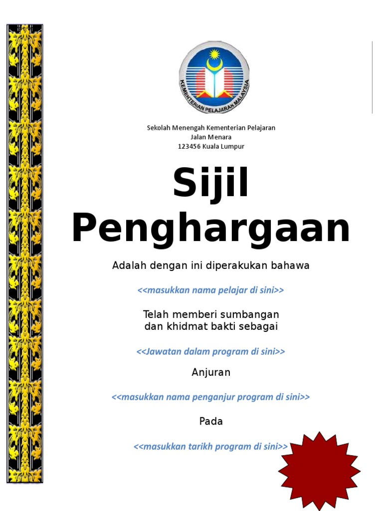 Contoh Sijil Penghargaan Dan Boleh Diedit