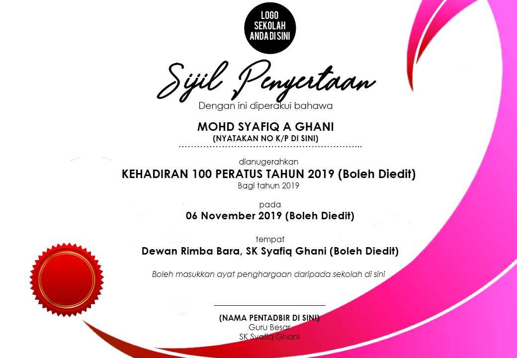 Contoh Sijil Penghargaan Dan Boleh Diedit