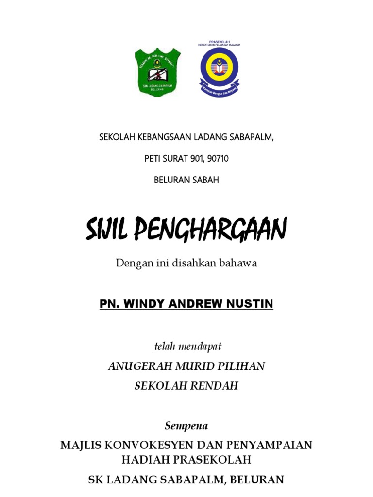 Contoh Sijil Penghargaan Dan Boleh Diedit