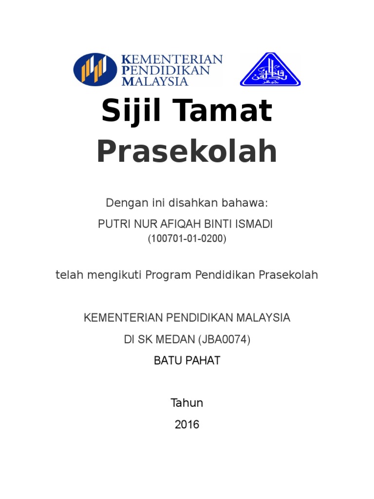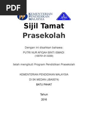 Sijil Pendidikan Prasekolah Ahmed Baihaqi S Website