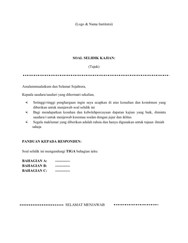 Contoh Borang Soal Selidik Tesis Contoh Qos Cute766