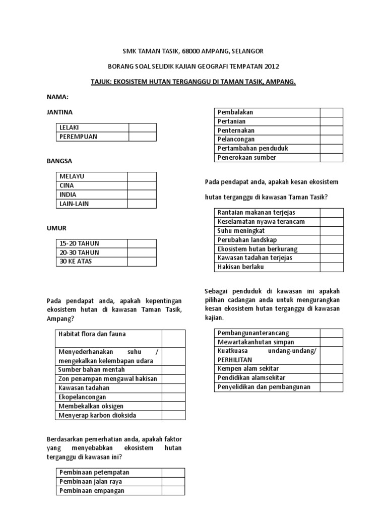 Contoh Borang Soal Selidik 2020 Banyak Contoh Portal Malaysia