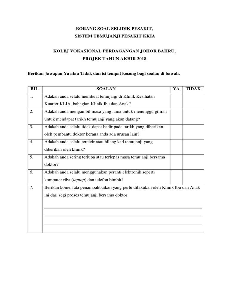 Borang Soal Selidik Pesakit