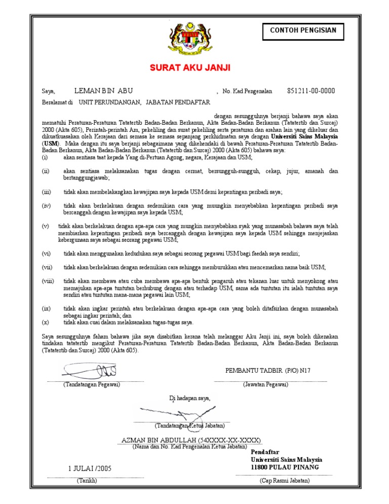 Contoh Surat Aku Janji Pelajar Spm