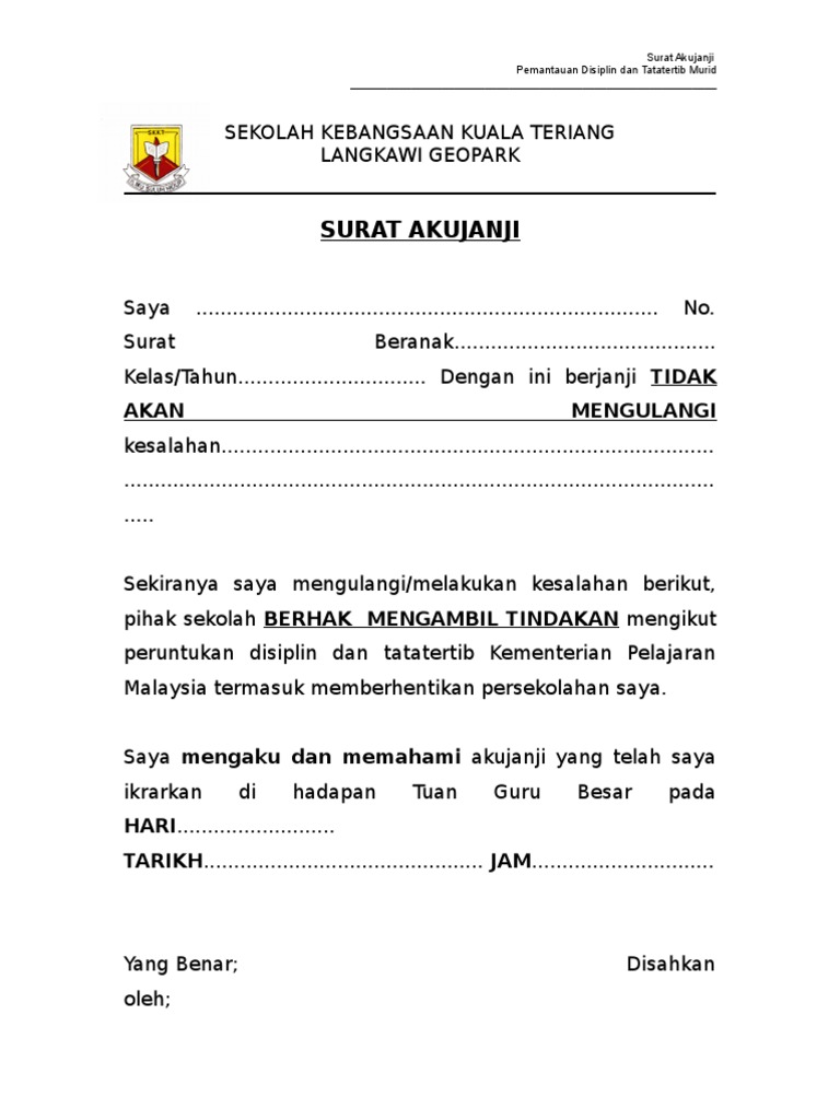 Surat Aku Janji Kesalahan Pelajar 2015