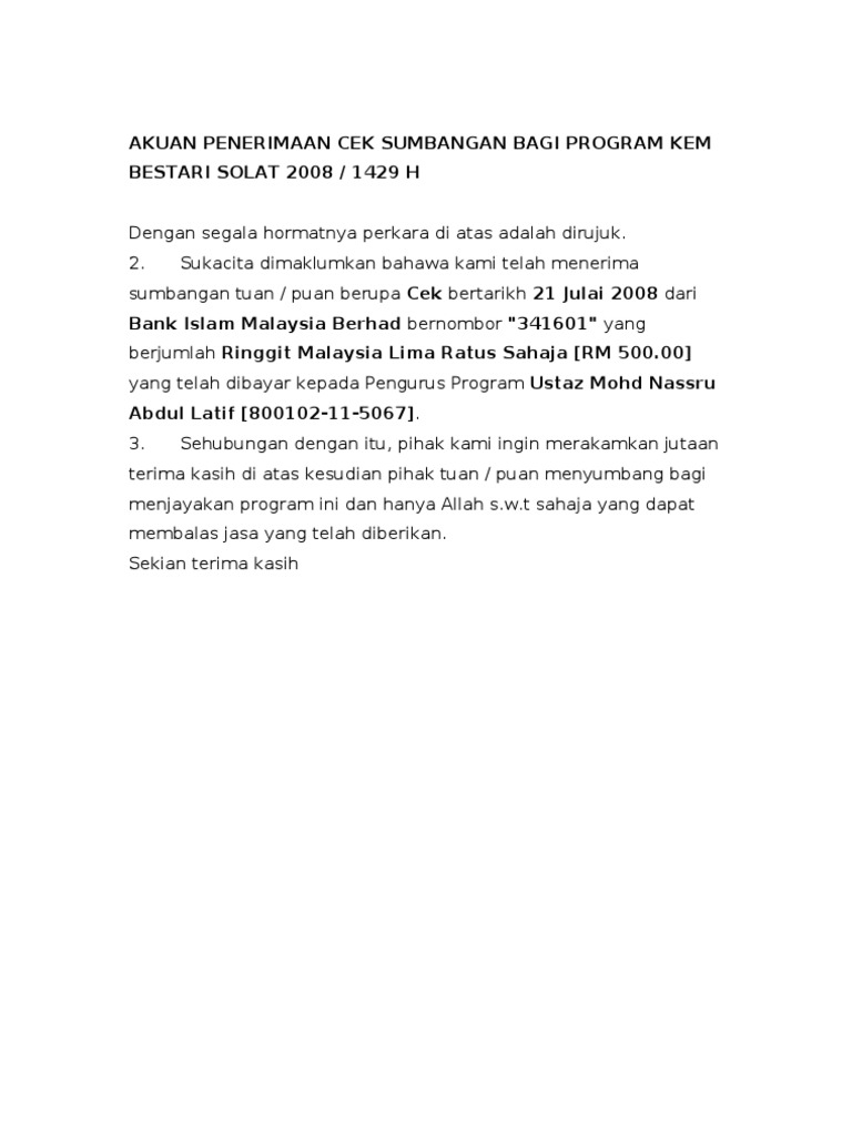 Surat Akuan Penerimaan Wang Bayaran Pdf Document