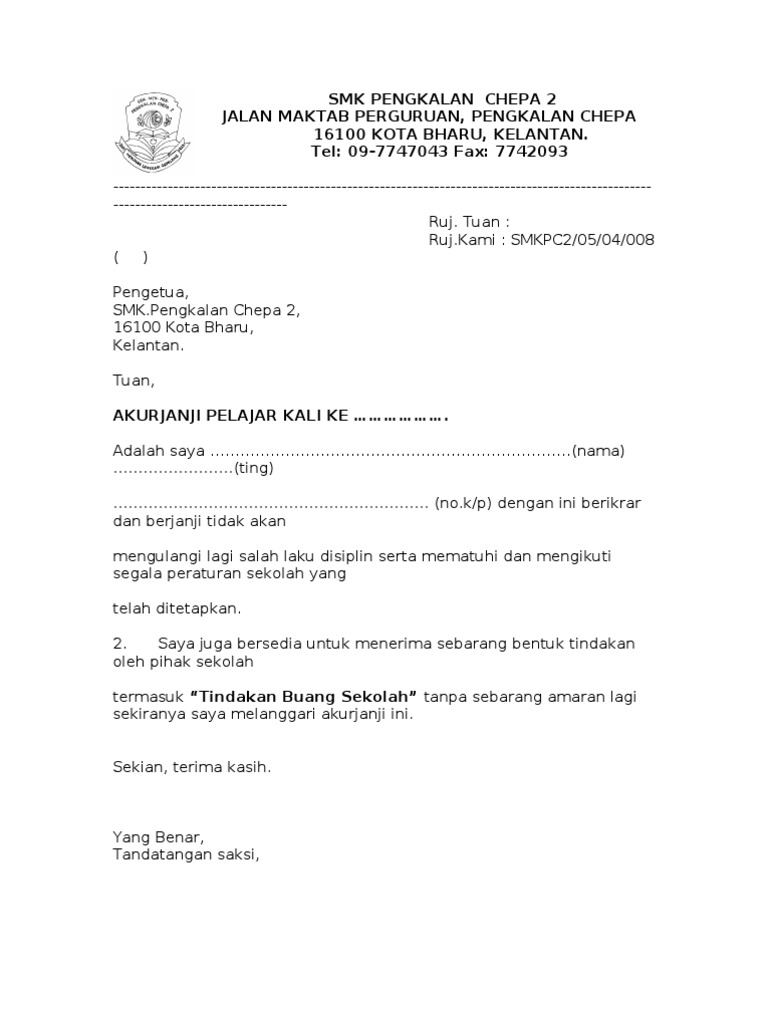 Contoh Surat Aku Janji Pelajar Kolej Download Kumpulan Gambar
