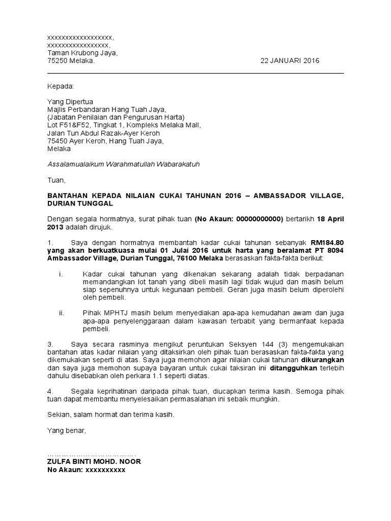 Contoh Surat Rasmi Bantahan Arasmi