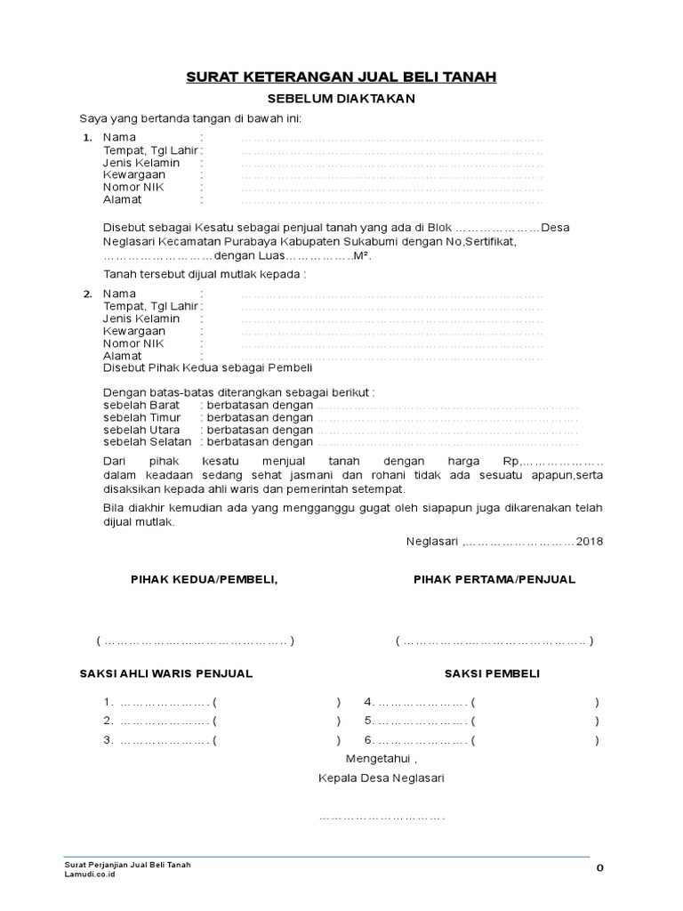 Contoh Format Surat Jual Beli Tanah Sebelum Diaktakan