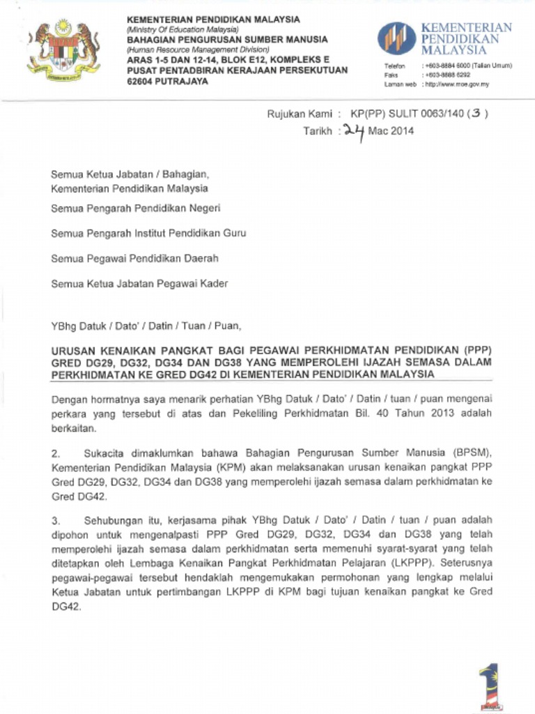 Surat Makluman Kenaikan Pangkat Ke Dg42