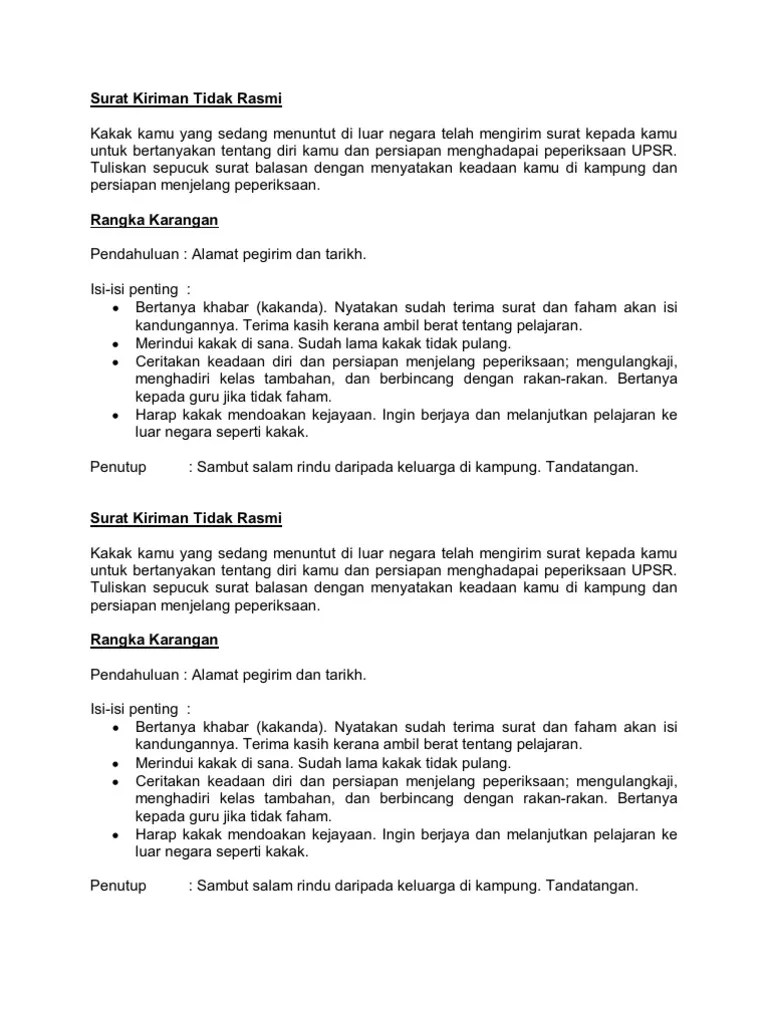 Format Dan Contoh Surat Tidak Rasmi Upsr Online