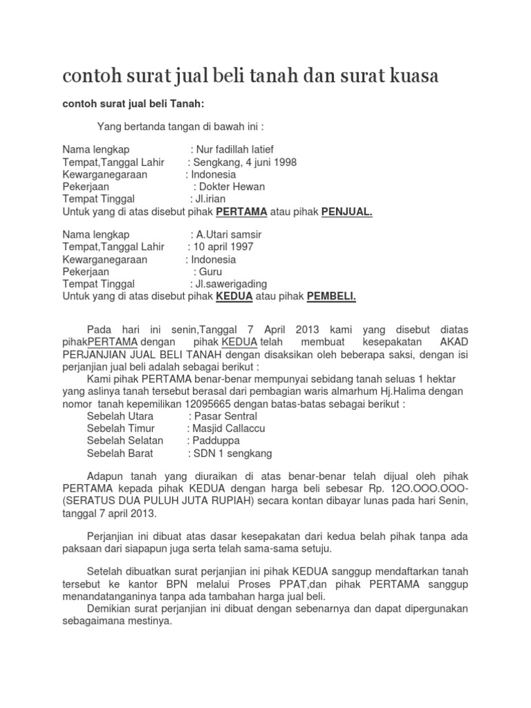 Contoh Surat Jual Beli Tanah Dan Surat Kuasa