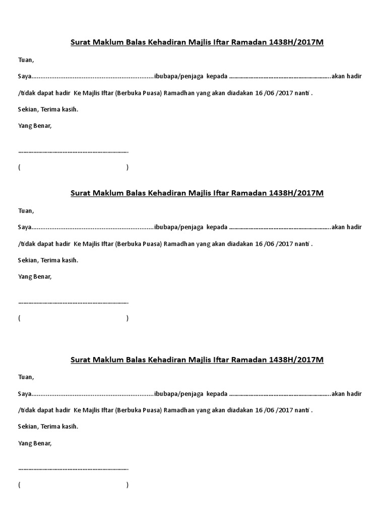 Jawapan Contoh Surat Maklum Balas Kehadiran