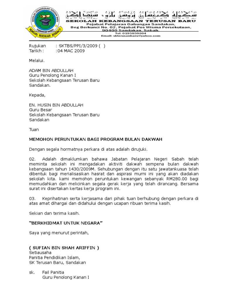 Contoh Surat Rasmi Permohonan Peruntukan Kewangan Resepi Book P