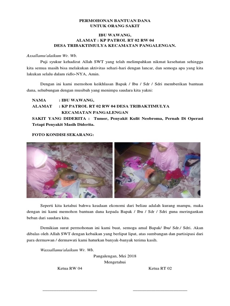 Contoh Surat Minta Sumbangan Untuk Orang Sakit Gawe Cv