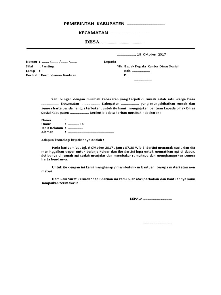Surat Permohonan Bantuan Bencana Alam Format Administrasi Desa