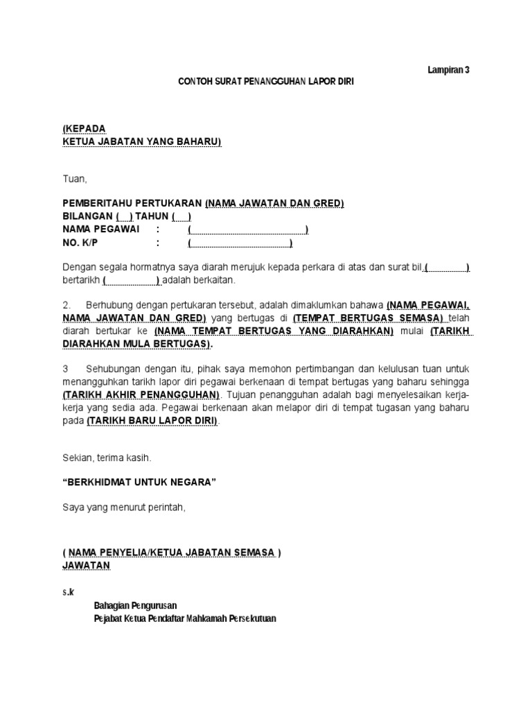 Tangguh Contoh Surat Penangguhan Lapor Diri