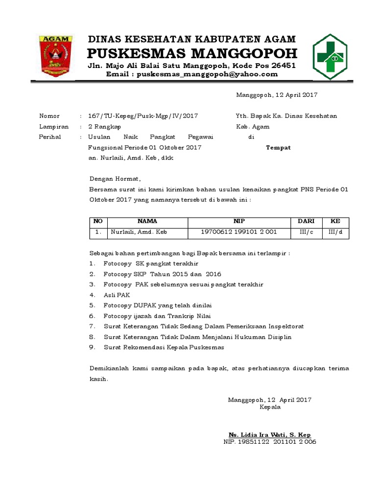 Surat Pengantar Naik Pangkat Docx