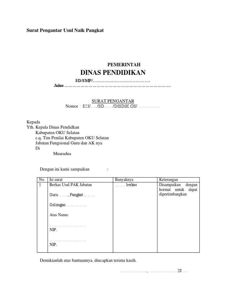 Dinas Pendidikan Surat Pengantar Usul Naik Pangkat