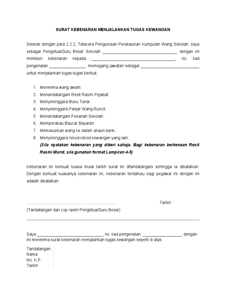 Surat Kebenaran Menjalankan Tugas Kewangan Doc