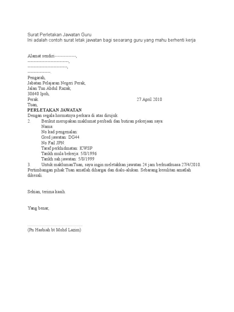 Contoh Surat Perletakan Jawatan Guru Tadika Download Kumpulan Gambar