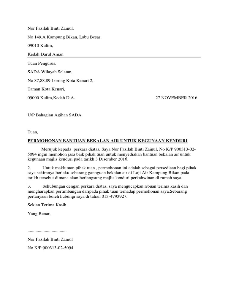 Surat Rasmi Permohonan Bekalan Air Viral Blog P