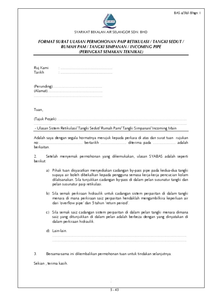 Surat Rasmi Permohonan Bekalan Air Rasmi V