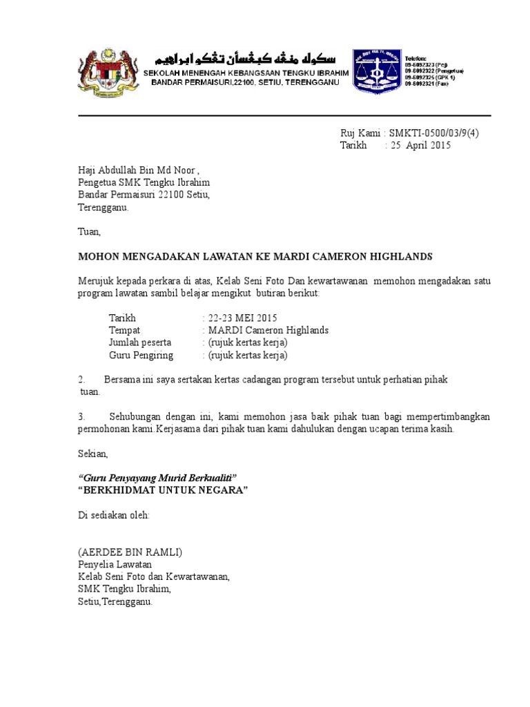 Format Surat Rasmi Lawatan Sambil Format Surat Rasmi Lawatan Mahabbah Format Surat Rasmi Lawatan Ke Format Surat Rasmi L Surat Pengunduran Diri Penjara Belajar