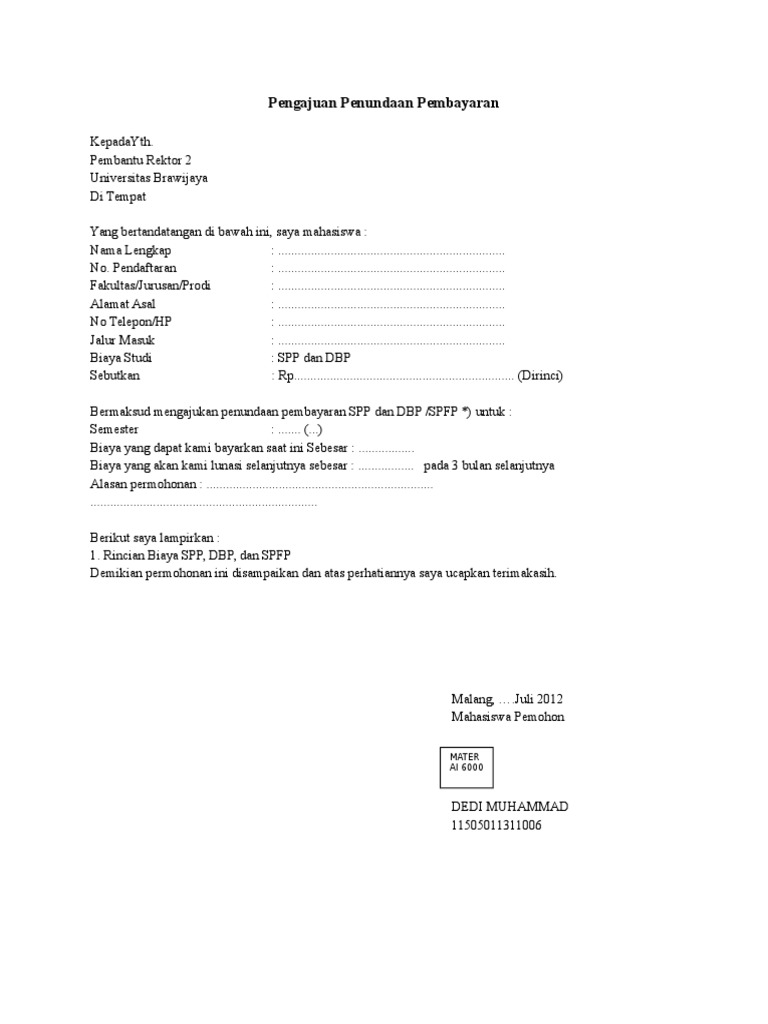 Contoh Surat Permohonan Penundaan Pembayaran Spp Kuliah Bagikan Contoh