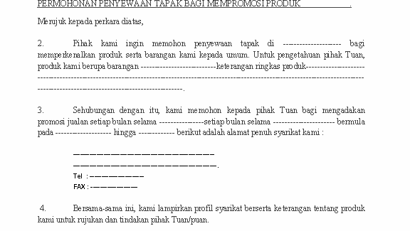 Contoh Surat Rasmi Permohonan Tapak Perniagaan Frasmi