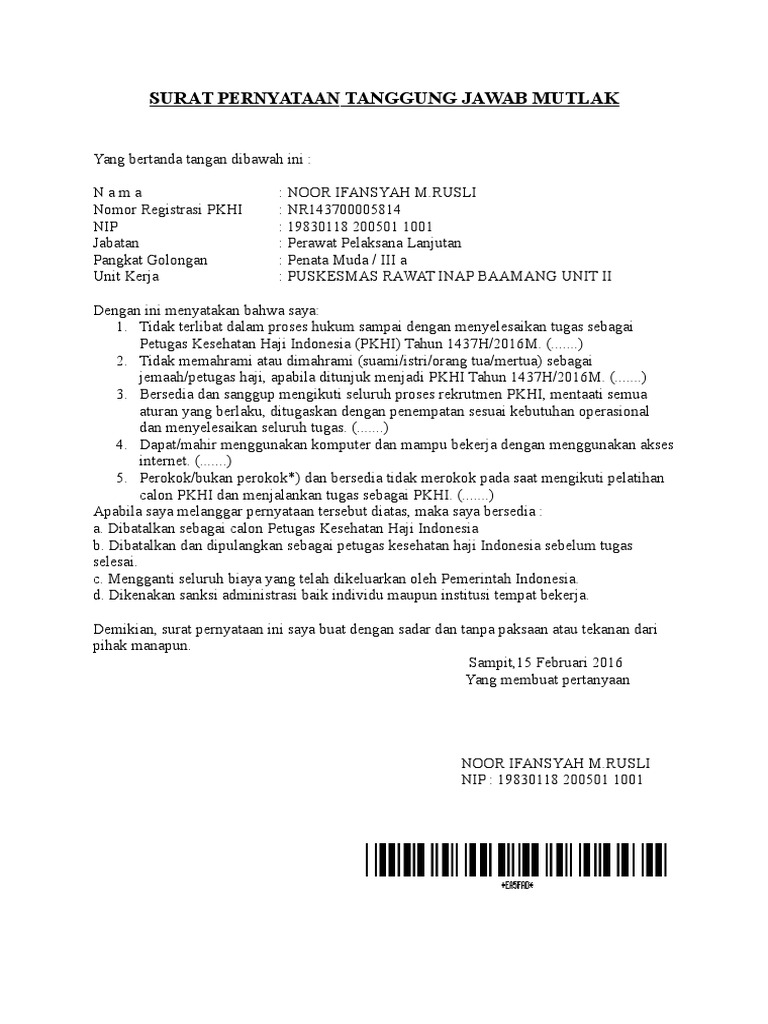 Contoh Surat Pernyataan Tanggung Jawab Mutlak Belajar Office