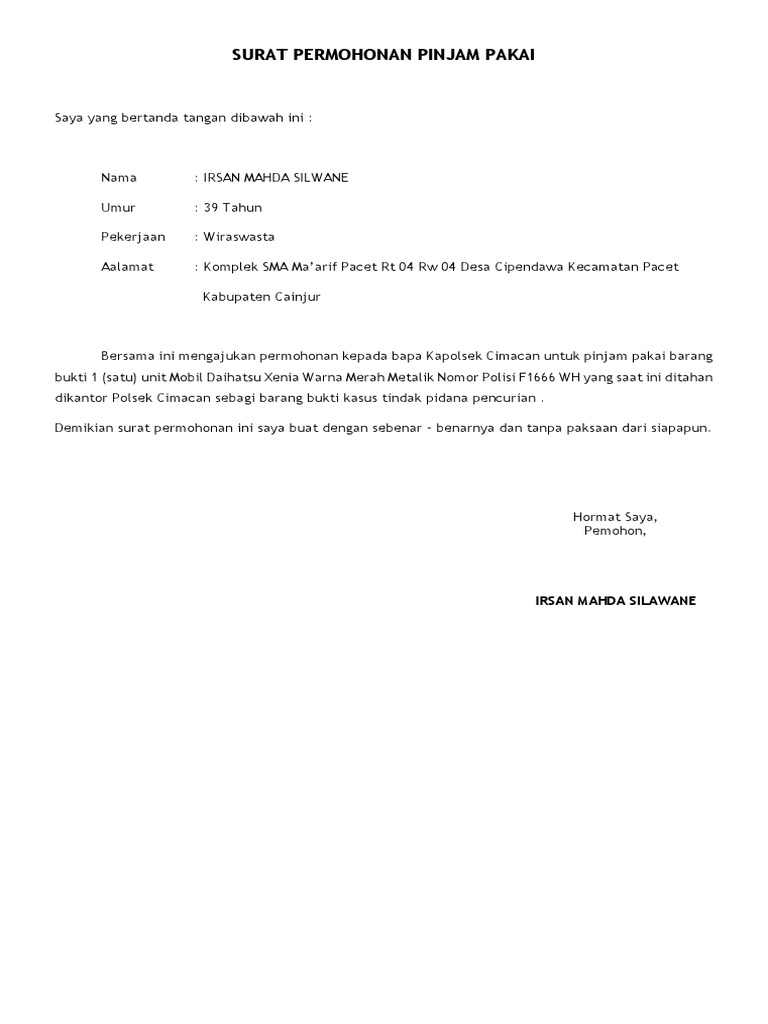 Contoh Surat Pinjam Pakai Barang Bukti Kepolisian Dapatkan Contoh