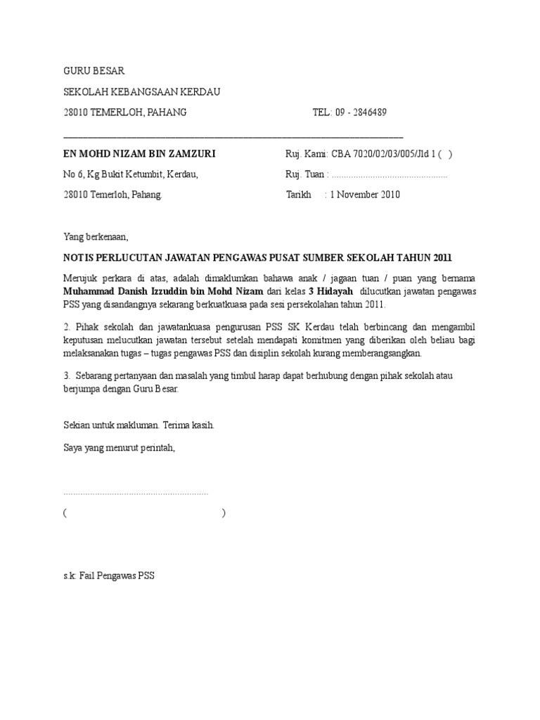 Contoh Surat Rasmi Perletakan Jawatan Sebagai Pengawas Sekolah Download Kumpulan Gambar