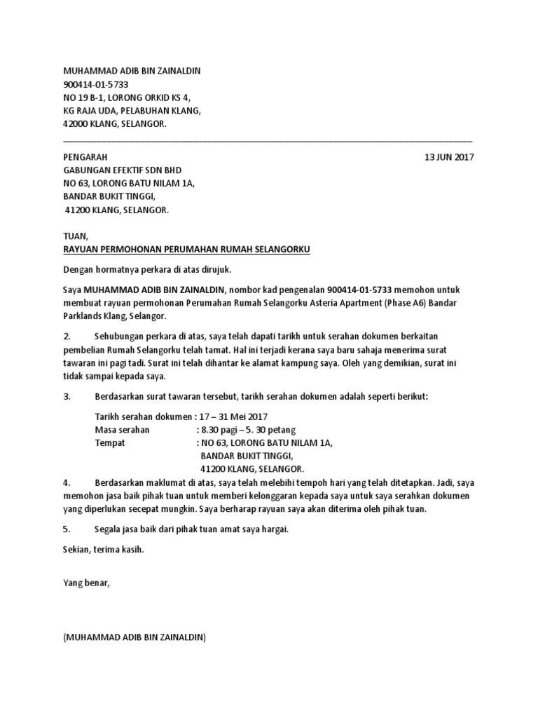 Surat Rayuan Mohon Salinan Pelan Rumah Asal Sku13 Pdf Docdroid